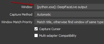 选择 Window Capture,并锁定 DeepFaceLive 输出窗口。