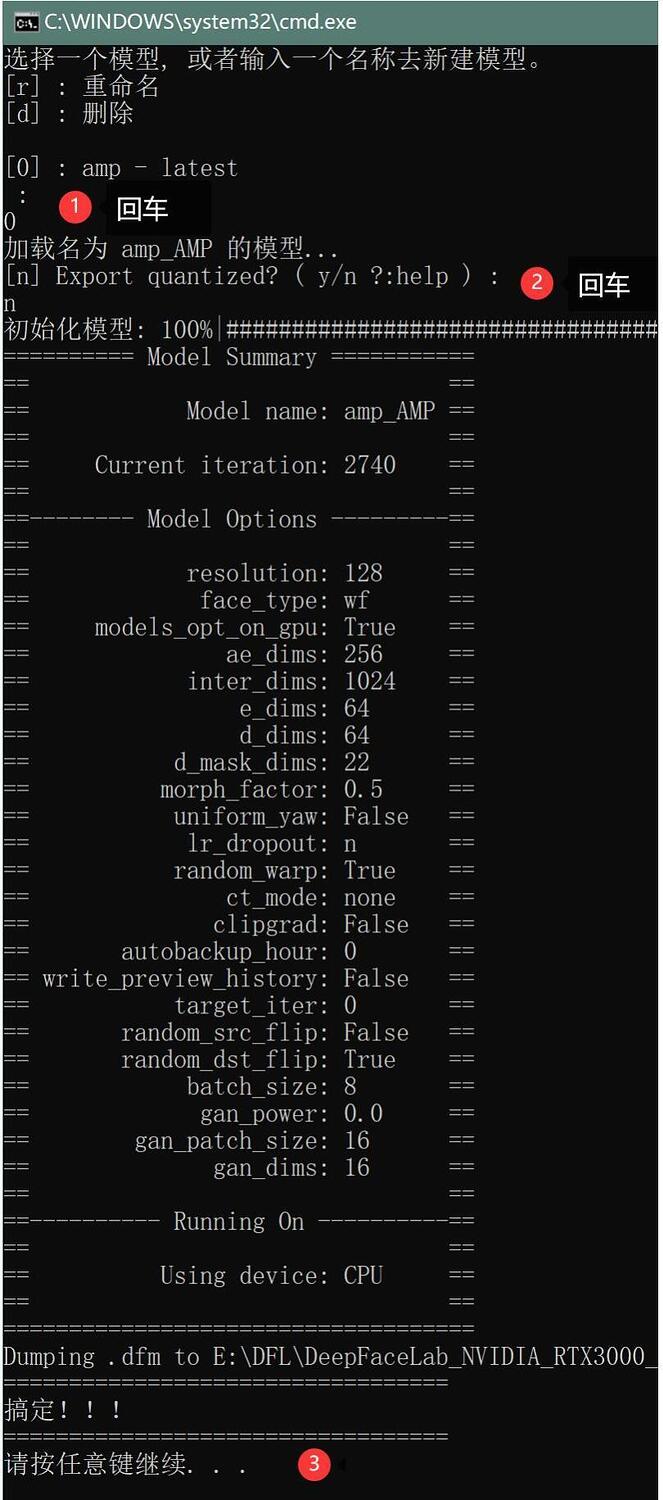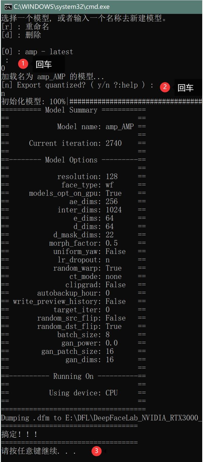 6) 导出AMP模型 export AMP as dfm.bat - 选择模型 → 连续回车 → 等待片刻