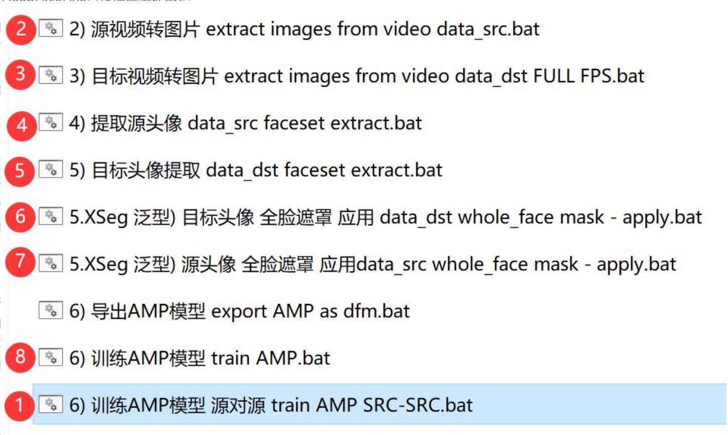6) 训练AMP模型 源对源 train AMP SRC-SRC.bat,训练数百万次 - 删除模型文件夹中的 _AMP_inter_dst.npy 文件