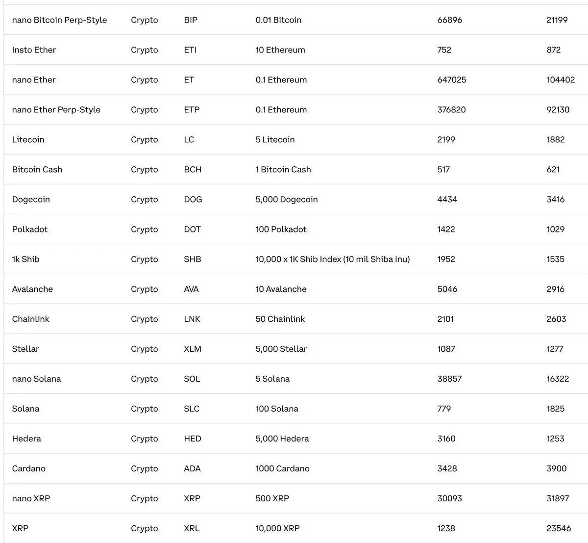 图:Coinbase 衍生品交易所上线超 6 个月的项目一览