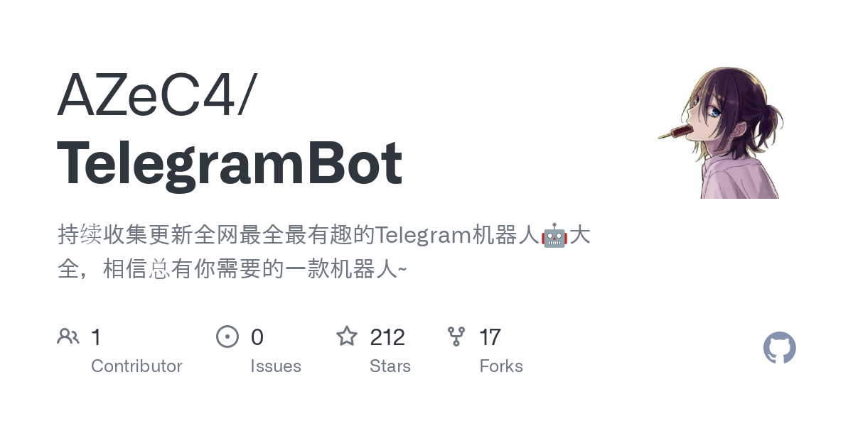 这是GitHub上的一篇文章,收录了各种Telegram机器人,帮助您发现更多实用工具